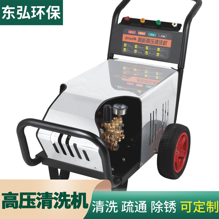 高壓清洗機,是通過動力裝置使高壓柱塞泵產生高壓水來沖洗物體表面的機器。它能將污垢剝離,沖走,達到清洗物體表面的目的。因為是使用高壓水柱清理污垢,所以高壓清洗也是世界公認科學、經濟、環保的清潔方式之一。 高壓洗衣機是一種高壓水射流清洗設備,它加水加壓至足夠的壓力,并使用高壓水清洗污垢